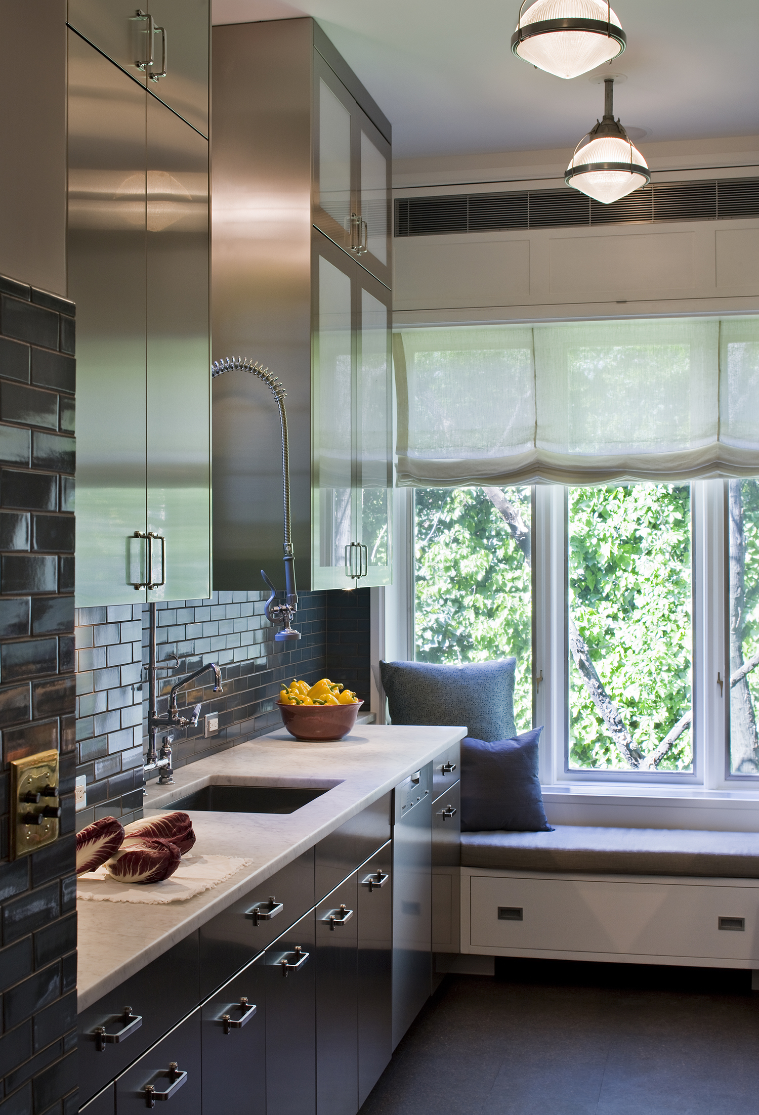 The goal for this classic Victorian townhouse on the Upper West Side of Manhattan was to create an interior with a modern sensibility compatible with original details, notably the stunning woodwork and the fireplace surrounds.